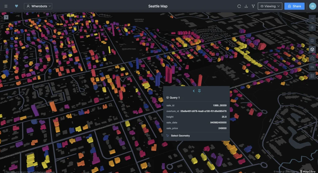 The combination of Spatial SQL and WherobotsDB’s distributed architecture means silver layer work that once required deep geospatial expertise and careful optimization is now accessible to data engineers who know SQL. Wherobots handles the spatial complexity.