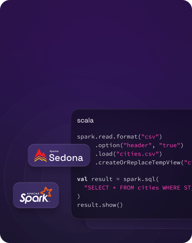 Compute Planetary scale spatial data operations WherobotsDB, fully compatible with Apache Sedona, is the engine built for physical world data. TRY WHEROBOTS Optimized for Geospatial High performance spatial joins with 300+ ST_ and RS_ functions built to accelerate productivity. Unparalleled Performance Up to 20x faster geospatial operations than traditional big data engines. Planetary Scale Powered by Apache Spark and Sedona to scale your spatial intelligence without limits. The most complete spatial data engine WherobotsDB delivers the fastest and most capable engine for cost-efficient performance across general-purpose spatial SQL workloads. The following table was run across multiple compute engines using the Apache Sedona SpatialBench at Scale Factor 1000. Scale Factor 1000 Query Capability Matrix SpatialBench Query # WherobotsDB Sedona on Serverless Spark Proprietary SQL Serverless Proprietary Spark Clusters with Spatial SQL Sedona on Managed Spark Clusters 1: Spatial filter, aggregation, sorting 2: Spatial filter, aggregation, sorting 3: Spatial filter, aggregation, sorting 4: Lightweight spatial join and aggregation 5: Spatial aggregation 6: Heavy spatial join 7: Geometry construction and access 8: Heavy distance join 9: Heavy polygon self spatial join 10: Heavy spatial left join 11: Multi-way spatial join 12: KNN join SpatialBench for Apache Sedona Key capabilities Unlimited Scale Scale workloads seamlessly from small to a planetary scale. Apache Spark & Sedona Compatible Migrate existing Apache Spark and Sedona workloads without changing a single line of code. Fully compatible out-of-the-box. Nothing to Manage But Your Code Serverless by default, or deploy securely in your own VPC. Complete Spatial Intelligence Cloud High performance spatial joins with 300+ ST_ and RS_ functions built to accelerate productivity. Low Cost + High Performance Spatial Operations WherobotsDB delivers fast, cost-efficient performance across spatial SQL and python workloads*. *This represents actual cost benchmarking results for SpatialBench queries 7-12 with a scale factor of 1000 across three of the most comparable deployment options. Contact us to Compare All Benchmarks WherobotsDB Lowest Proprietary SQL Serverless Engine x2.92 higher Apache Sedona on Serverless Spark Engine x2.03 higher Proprietary Cloud Managed Spark x2.52 higher Relative cost across operations that completed Workload Flexibility From Small to Planetary Scale Workloads Perform city to global scale spatial data operations in a single solution. City Region Country Global Productivity Accelerate Innovation Economically SQL and Python 300+ ST_ and RS_ Functions Raster Vector Tabular SPATIAL JOIN Data Products “Spark is incredibly powerful — but it’s also a huge learning curve, Wherobots shortened the painful part of Spark and gave us production-grade scalability without having to babysit clusters.” Ben Hudson Co-founder and Head of Applied Science, aarden.ai Apache Spark & Sedona Compatible Lift and shift your existing Spark + Sedona workloads with the same APIs and code, now with improved performance and lower cost. Learn More scalaspark.read.format("csv") .option("header", "true") .load("cities.csv") .createOrReplaceTempView("cities"); val result = spark.sql( "SELECT * FROM cities WHERE ST_Contains(area, point)" ) result.show() Deployment & Compatibility Zero Migration. Total Flexibility. Keep your existing Apache Spark or Sedona code, run it serverless or in your VPC Serverless by Default Zero infrastructure to manage Auto-scaling, cost-efficient Works out-of-the-box Learn more Deploy in Your Cloud (BYOC) Full control in your VPC Enterprise-ready security Works behind your firewall Reach out to our team Get Started with WherobotsDB Explore the platform, build powerful solutions, or automate your geospatial workflows. Discover Seamless access to the right datasets, AI models and solution accelerators for your use case. LEARN MORE Build Start using WherobotsDB with familiar Apache Spark/Sedona syntax. LEARN MORE Automate Orchestrate spatial data flows at scale with Apache AirFlow or our REST API. LEARN MORE FAQ What deployment options are available for Wherobots? Wherobots provides two primary deployment options: a SaaS Serverless model and a Bring-Your-Own-Cloud (BYOC) deployment option. In the serverless model, which is the default, Wherobots manages both the control plane and the multi-cloud/multi-region compute plane in its own environment. For customers with specific security or regulatory needs, the BYOC option allows the compute plane to be run within their own cloud Virtual Private Cloud (VPC). Which spatial functions are supported in Wherobots? Wherobots has built-in support for over 300 spatial functions, including standard ST_ and RS_ functions for geometry processing, spatial predicates, and large-scale joins. In addition, Wherobots supports a wide range of advanced spatial functions for scalable analytics, including: Spatial joins (point-in-polygon, polygon-to-polygon) kNN join for nearest neighbor queries Zonal statistics on raster layers Travel isochrones to define travel areas within a specified time GPS map matching for real-time mobility data Raster inference with deployed AI models PMtiles generation for fast map visualization What raster RS_ function types are available in WherobotsDB compute? 100 and growing Raster RS_ functions are available in WherobotsDB including the following types: In-DB and Out-DB raster loaders Affine Transformations including translation, scaling, rotation, shearing, reflection as well as additional mathematical functions for collinearity, concurrency and ratios of segments. Union Aggregation to blend / combine multiple rasters into a single multi-band raster. Raster functions such as pixel operations, geometry functions, accessors and band accessors, zonal stats, predicates, operators, map algebra, and tilers. Writers including dataframe, ArcGrid, Geotiff, and PNG Visualizers fo